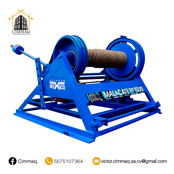Malacate de 1 tonelada FP-1000 sin motor, incluye poleas y bandas. Nota: La capacidad máxima del carrete son 400 mts. de cable de 3/8.