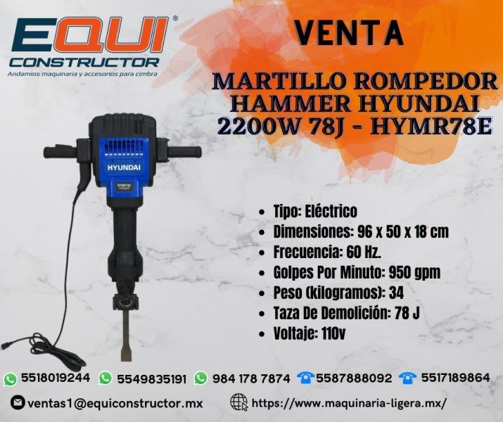 Martillo Demoledor Profesional de tipo eléctrico con potencia de 2,200 watts marca HYUNDAI .
