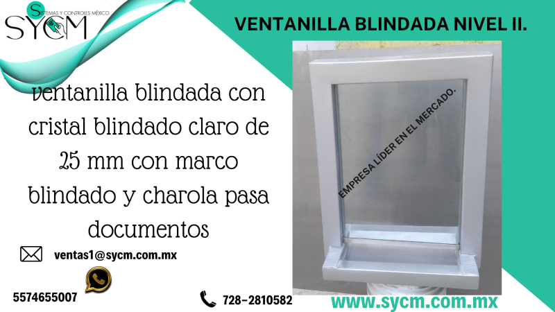 "Suministro e instalación de Ventanilla blindada con vidrio claro anti-bala de 32 mm (nivel III) peso de 60 kg/m2, resiste de 3 a 5 impactos de pistola en el mismo lugar, alto poder como las .357 Magnum y súper 38.